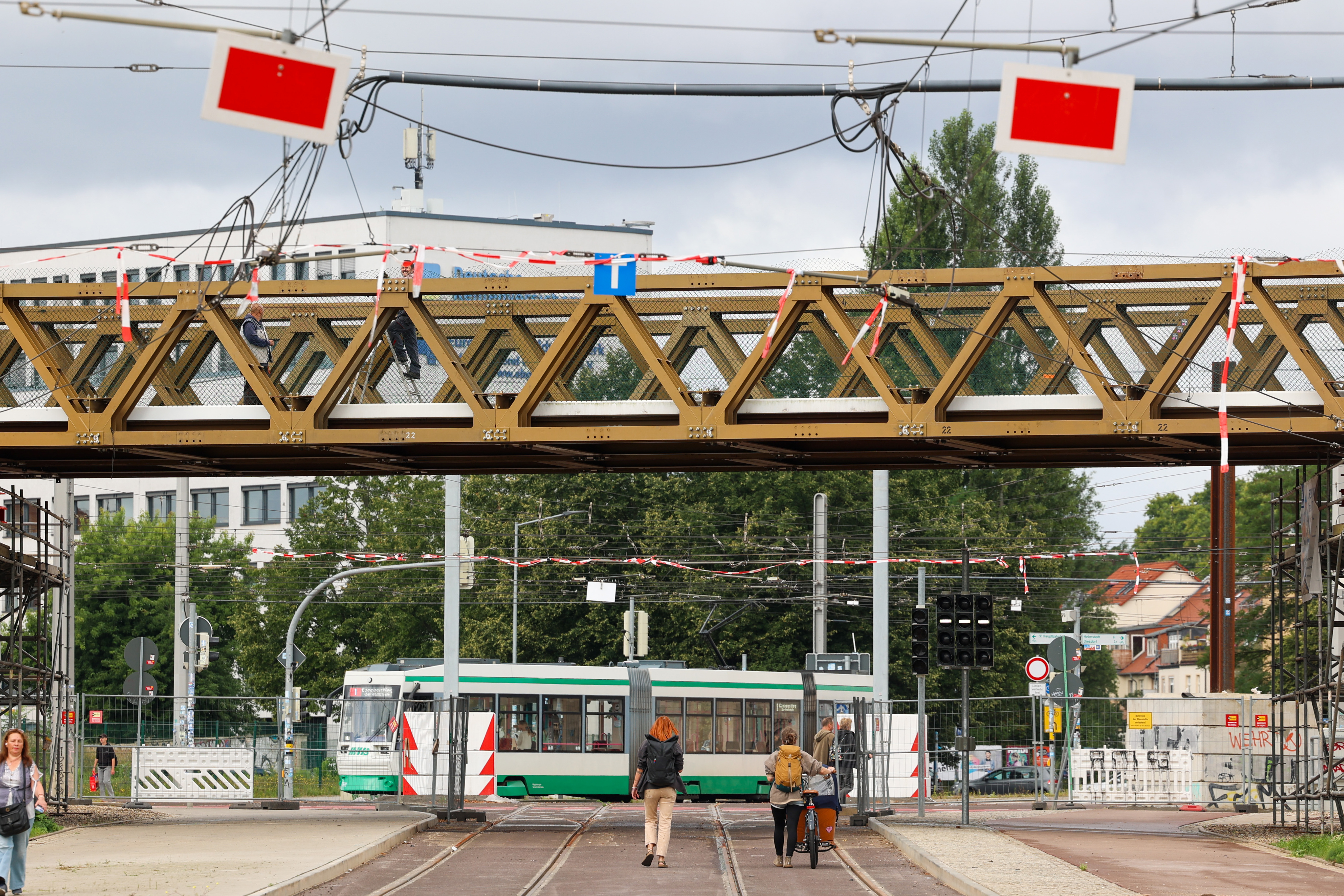Dafür hat die Landeshauptstadt Magdeburg als Projektverantwortliche eine Spezialfirma beauftragt, welche vom 1. bis 5. September Arbeiten am Brückenschutz unterhalb der Behelfsbrücke ausführt. Danach erfolgt der Aufbau der Fahrleitung durch die beauftragte Spezialfirma. Hierfür muss der Kreuzungsbereich Adelheidring – Olvenstedter Straße vom 8. September bis 10. September für Straßenbahnen gesperrt werden. In dieser Zeit ist kein Straßenbahnverkehr zwischen Große Diesdorfer Straße und dem Olvenstedter Platz möglich. Detaillierte Informationen zum ÖPNV-Angebot während dieser Sperrung folgen.
