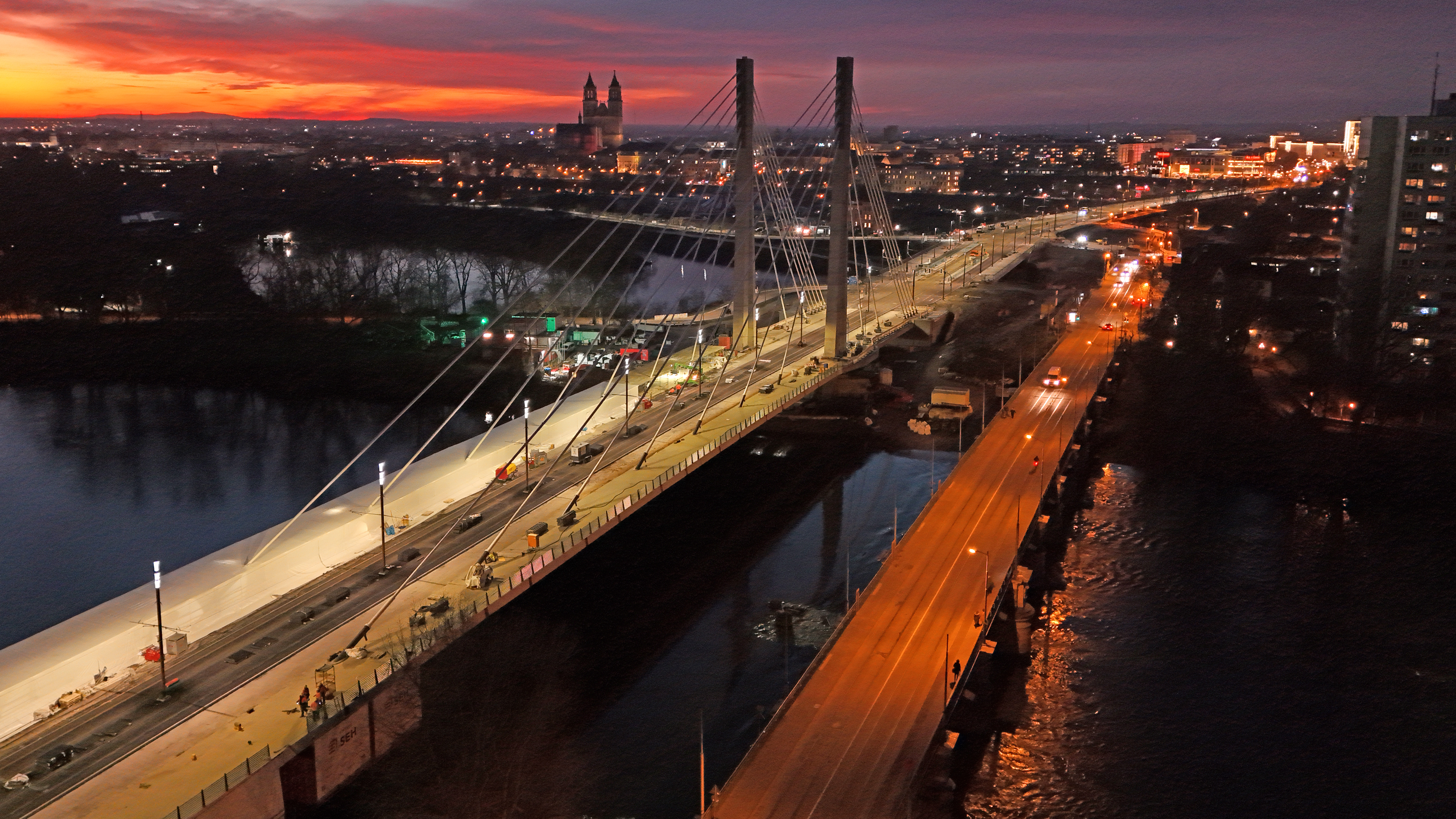 Ab Samstag, dem 23. Dezember gibt es ein Weihnachtsgeschenk für alle Fahrgäste der MVB: Die Fahrzeiten vieler Straßenbahnverbindungen verkürzen sich, denn wichtige Baustellen werden abgeschlossen. So wird die Sperrung in der Hallischen Straße aufgehoben, sodass die Linien und keine Umleitung mehr über den S-Bahnhof Buckau fahren müssen. Außerdem ist ein großer Meilenstein beim städtischen Bauprojekt für den neuen Strombrückenzug erreicht: Nach zwei Jahren können die Straßenbahnlinien und erstmals die neuen markanten Brücken über die Elbe befahren. Die Verbindungen zwischen den Stadtteilen Cracau und Brückfeld mit der Innenstadt verkürzen sich damit um bis zu 10 Minuten. Beispielsweise brauchen Fahrgäste vom Pechauer Platz künftig nicht mehr 20 Minuten bis zum Alten Markt, sondern nur noch 10.