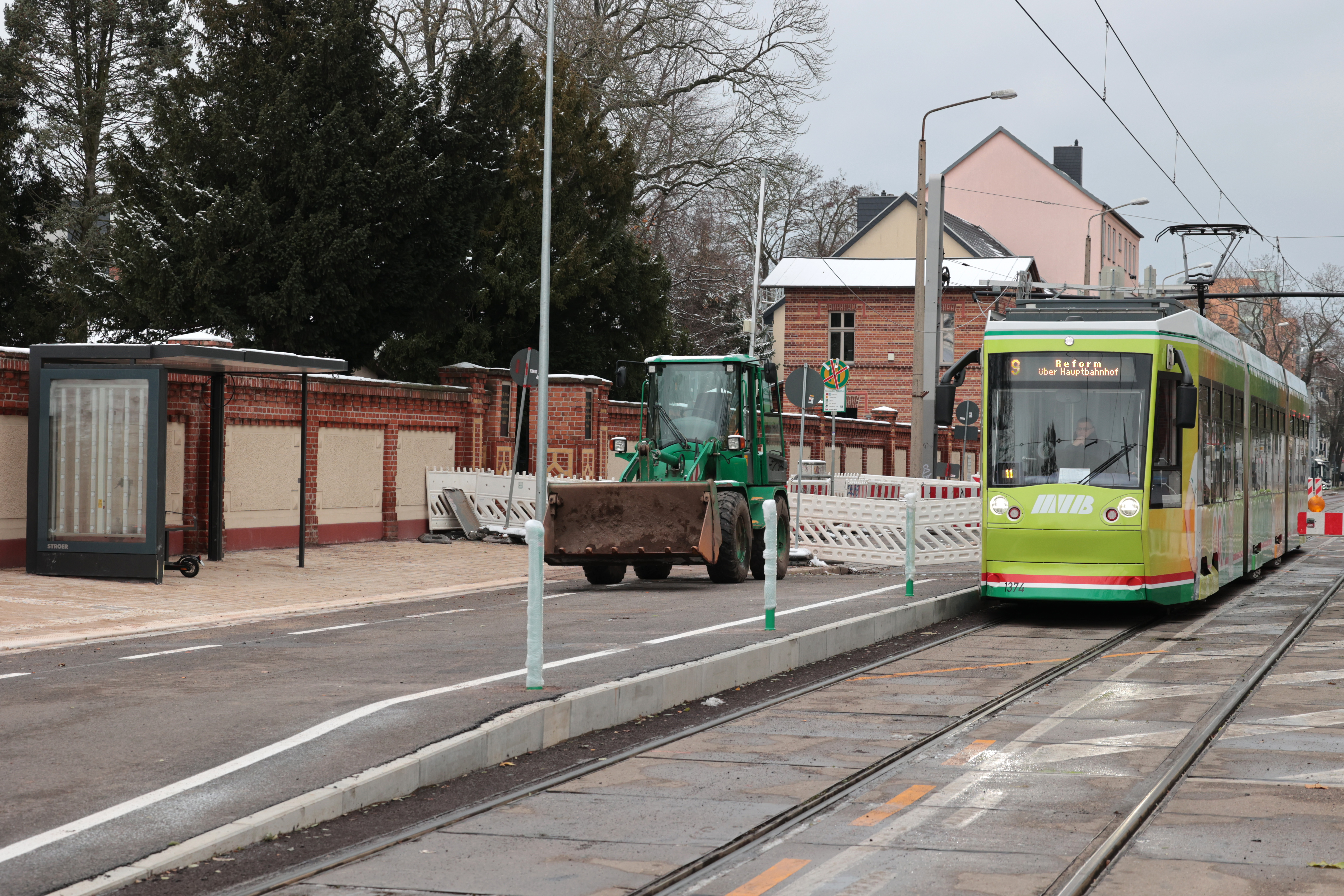 Auf 1,4 Kilometern Länge wird der August-Bebel-Damm seit 2021 durch die MVB umgestaltet und modernisiert. Am 20. November 2023 startet die nächste Bauetappe bei dem Großprojekt. Dann wechselt der Gleisbau auf das stadtauswärtige Gleis zwischen Gasereistraße und Kraftwerk-Privatweg. Weiterhin erfolgen Straßenbauarbeiten und die Verlegung verschiedener Versorgungsleitungen.