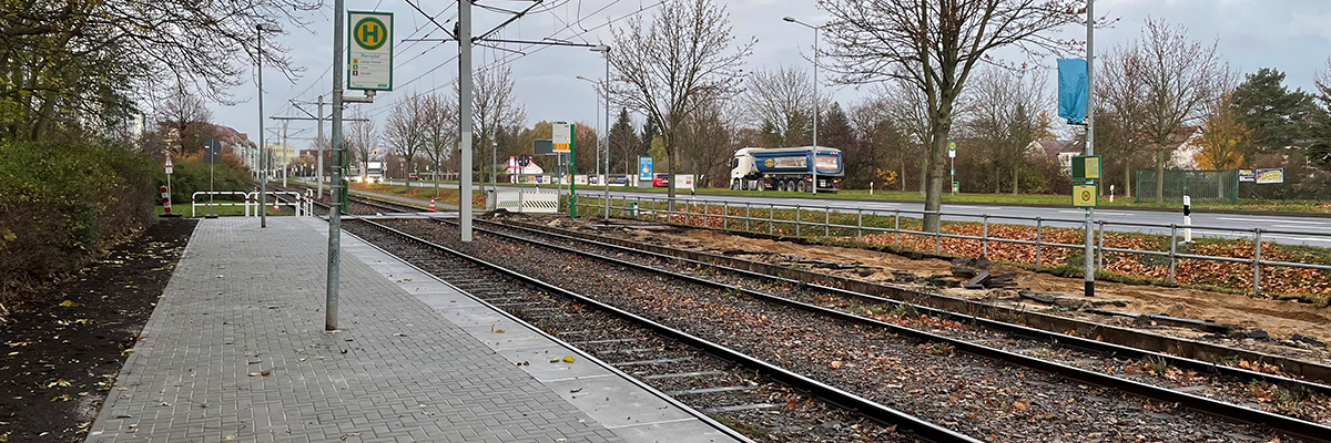 Insgesamt sind fünf neue barrierefreie Haltestellenpaare entstanden. In der Warschauer Straße und Raiffeisenstraße fährt die Straßenbahn separiert vom Autoverkehr, teilweise auf besonders attraktivem Grüngleis.