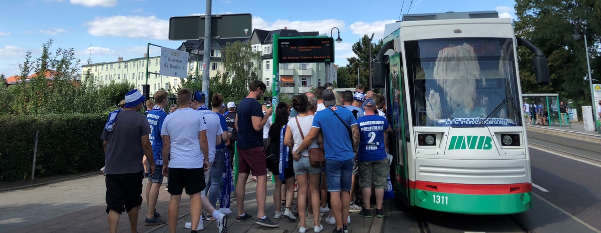 Wir setzen am Samstag, dem 3. Oktober 2020 zusätzliche Straßenbahnen ein, damit Fußballfans bequem und sicher zur MDCC-Arena gelangen. Die Eintrittskarten gelten als Fahrkarte.