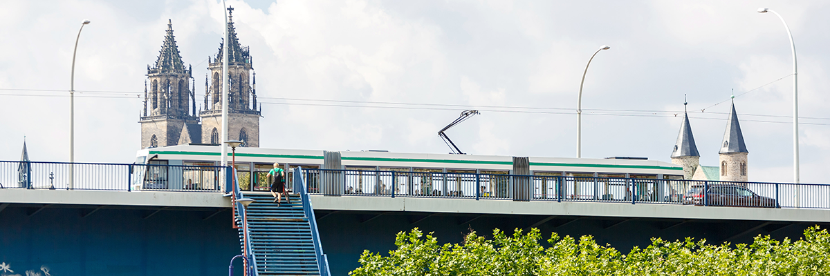 Der Brückenbau über die Elbe in Magdeburg hat erste Auswirkungen auf den Straßenbahnverkehr der MVB. Im Zuge der Bauarbeiten wird der Heumarkt gesperrt. Die Straßenbahnlinien 5 und 6 fahren deshalb verändert.