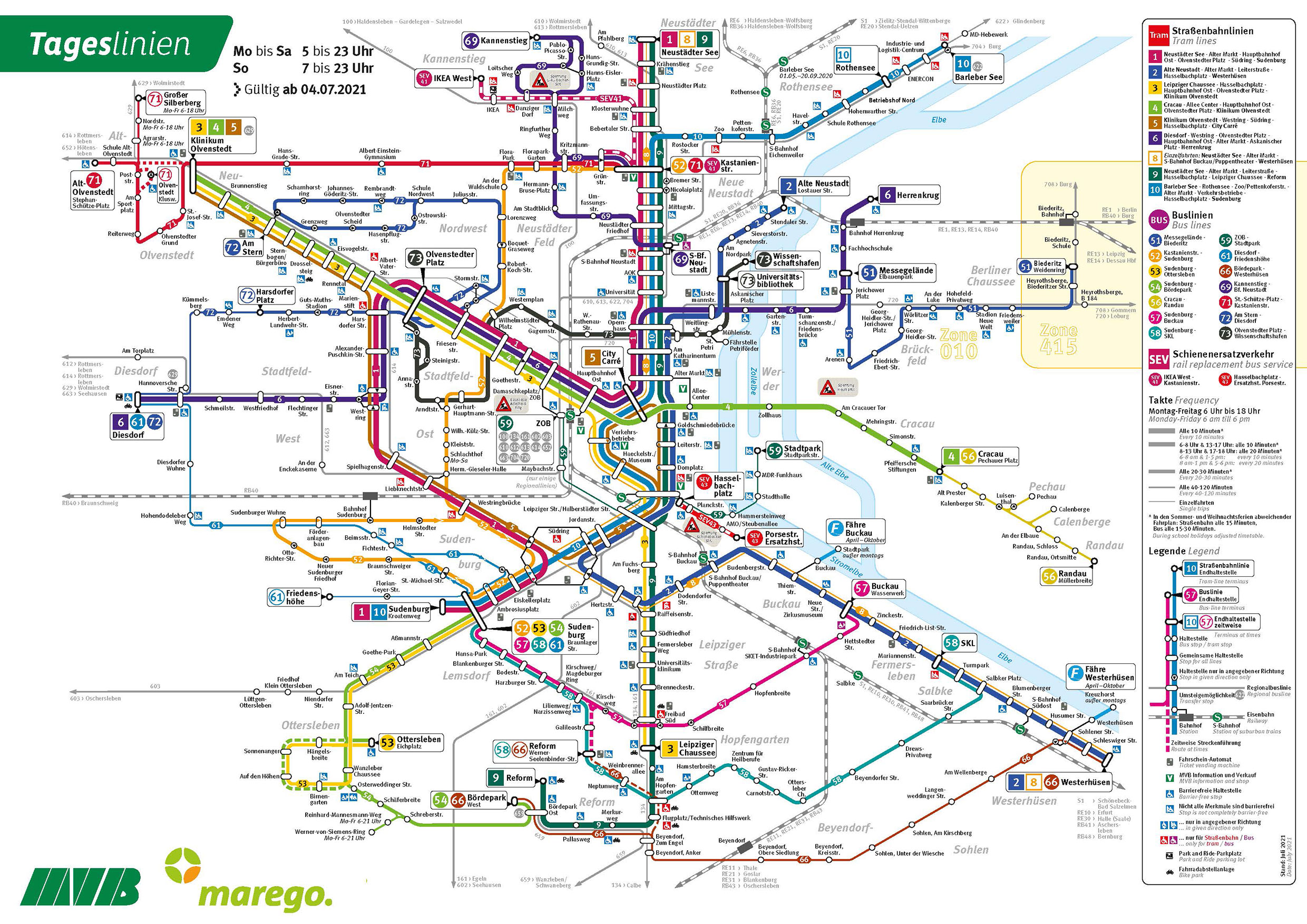 • Die Linie 6 fährt ab City Carré über den Breiten Weg Nordabschnitt und den Nordbrückenzug zum Messegelände und weiter zum Herrenkrug.