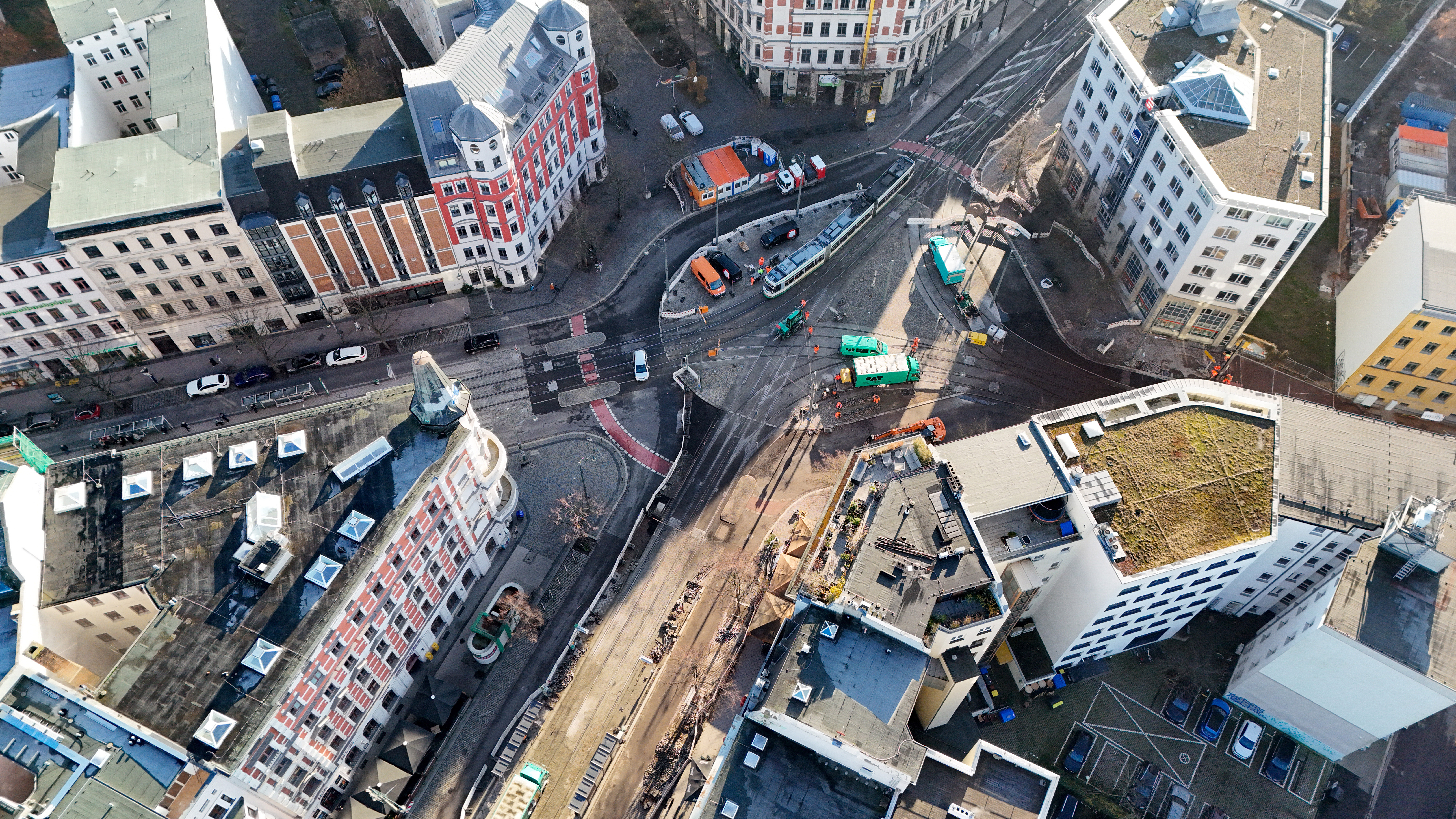 Das Gleiskreuz am Hasselbachplatz wurde nach 28 Jahren Dauernutzung seit dem 29. Januar 2024 in zwei Bauphasen vollständig erneuert. Die Investition in das Projekt beläuft sich auf 6,5 Millionen Euro.