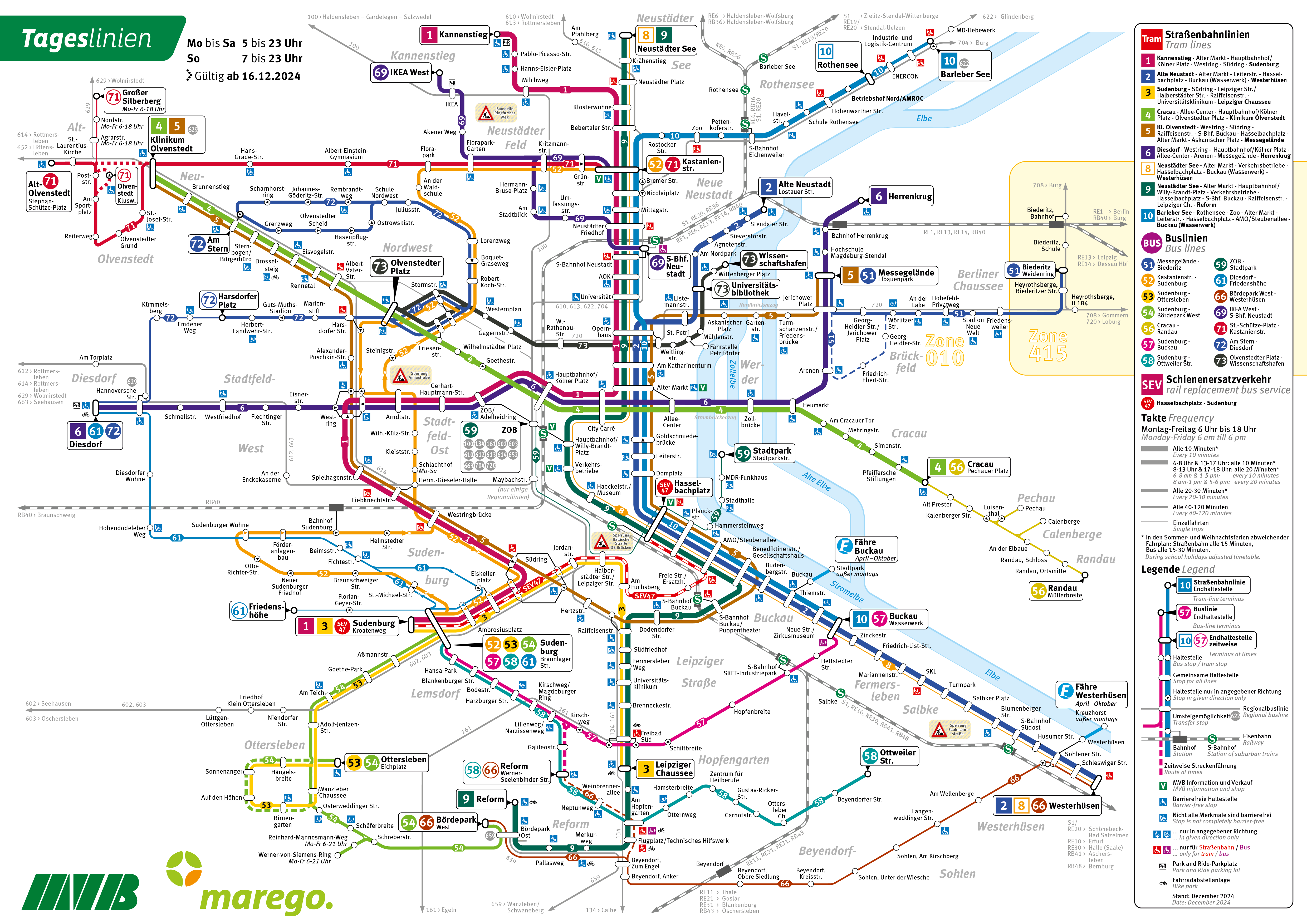 Allerdings bleibt die Hallische Straße aufgrund von Bauarbeiten der Deutschen Bahn an der Eisenbahnbrücke weiterhin gesperrt. Die Arbeiten der Deutschen Bahn haben sich erheblich verzögert. Um die Auswirkungen für Fahrgäste zu minimieren, richtet die MVB einen Ersatzverkehr mit Bussen zwischen dem Hasselbachplatz und Sudenburg ein.